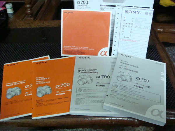 Sony A700 中文說明書及 保證卡(一樣上網登錄後~就保固24個月)