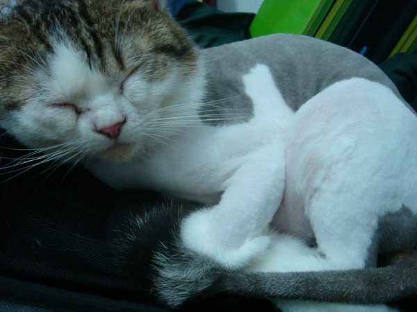 哈...小弟我又來公佈我家兒子 古錐的睡相了... 古:臭老爹 老是公佈我的睡相 爹:乖 誰叫你老是不乖乖讓我拍... 哈... ================================ 上次 剛幫古錐剃完毛 因太過興奮 結果都一直沒拍好 這次... 趁牠睡覺之際 好好再幫牠拍一次相 全身的毛都剃了 不過有些已經開始在長長嚕 瞧牠睡得多安穩 古:看我翻肚睡.... (伸伸腰 ) 古:老爹 別鬧了 我要睡 古:好想睡 坐著照睡不誤